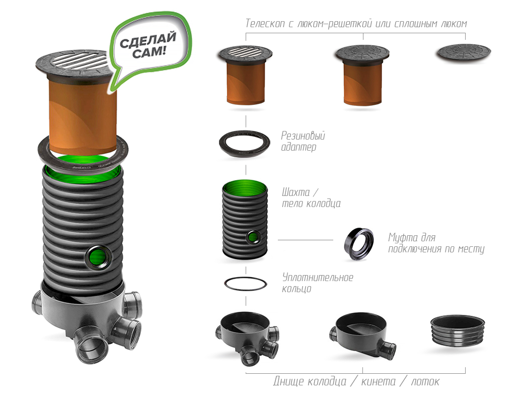 Инспекционные пластиковые колодцы до 600 мм. Простые в сборке и монтаже.