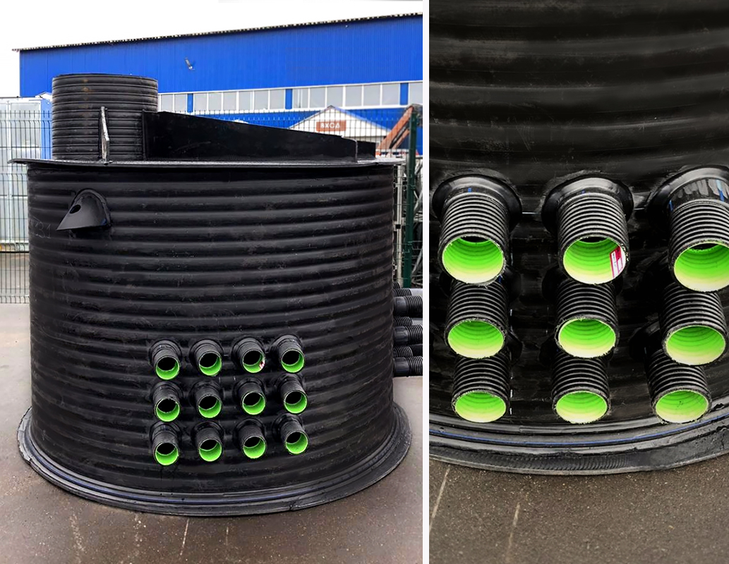 Колодцы поставляется на объект абсолютно герметичными и полностью готовыми к установке. Не требуется дополнительной герметизации и зачеканки подключений.