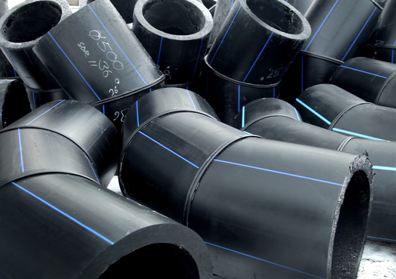 Соединительные части трубопровода, изготовленные методом стыковой сварки из отрезков полиэтиленовой трубы. Могут быть изготовлены по индивидуальному запросу практически любой конфигурации.