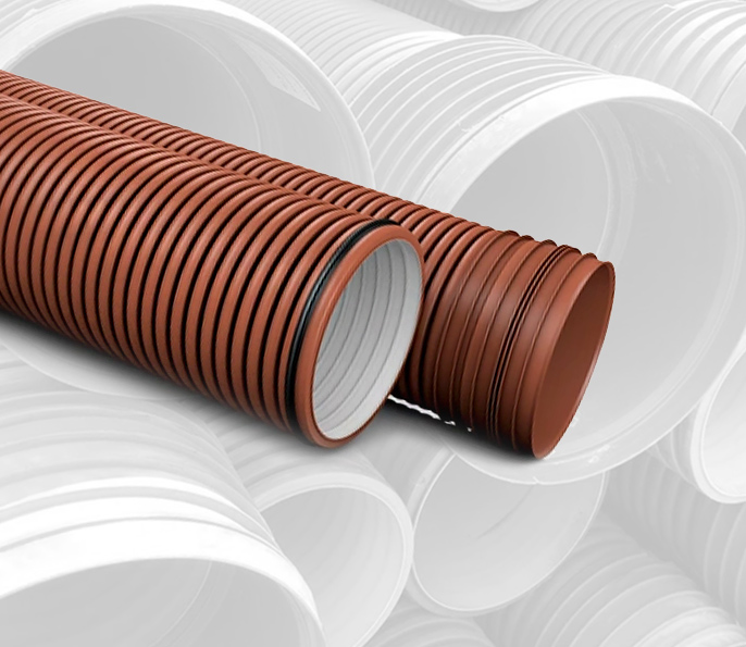 Трубы Pragma производятся с двойной стенкой из полипропиленового материала. Наружная сторона – гофрированная, кирпичного рыжего цвета. Внутреннее покрытие – гладкое, светло-серого цвета, таким образом, облегчается телевизионная инспекция при эксплуатации.